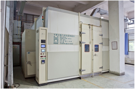 Environmental Test – can perform high and low temperature test, humid heat test, salt spray test, IP test upon electric apparatus, and the volume of dust-proof test box is 420m³, which could conduct IP test in the range of IP00-IP68